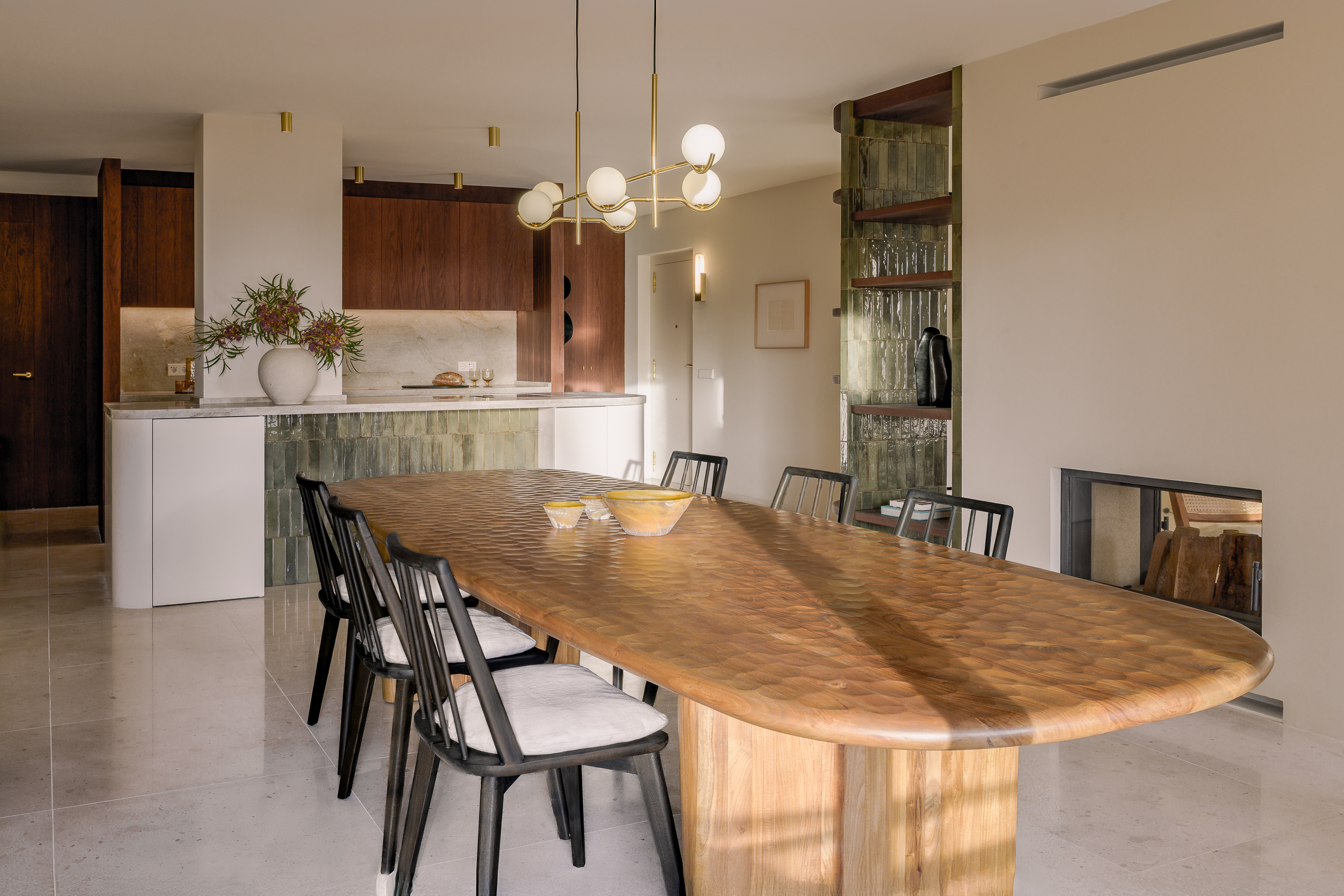 A space that appears simply well-designed — but is also energetically optimized for long conversations, visual openness, and absence of subconscious tension points.